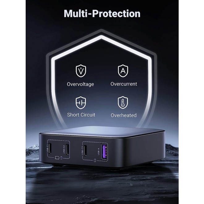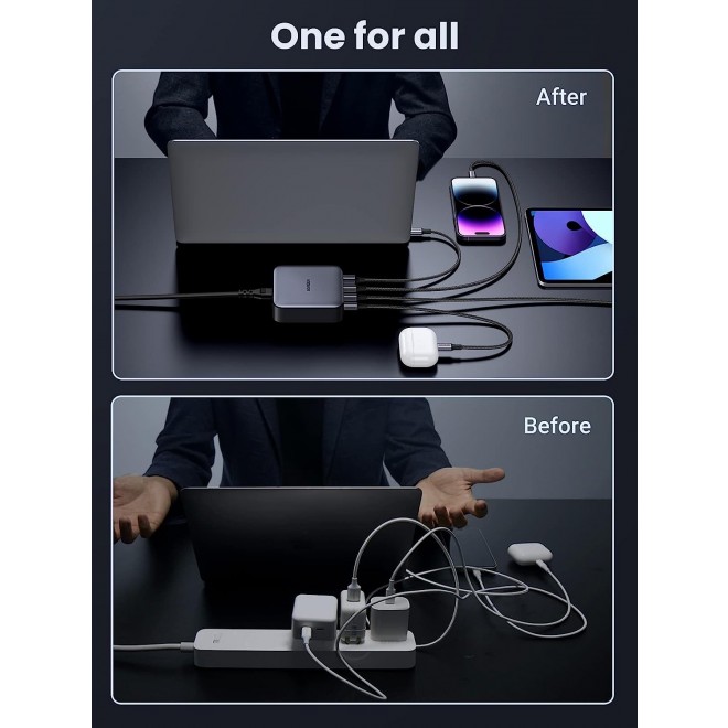 • 4-in-1 Multiport Charger: With superior GaN II tech, 3 USB-C ports and 1 USB-A port provide 100W to phones, tablets, laptops, and more! All at the same time.