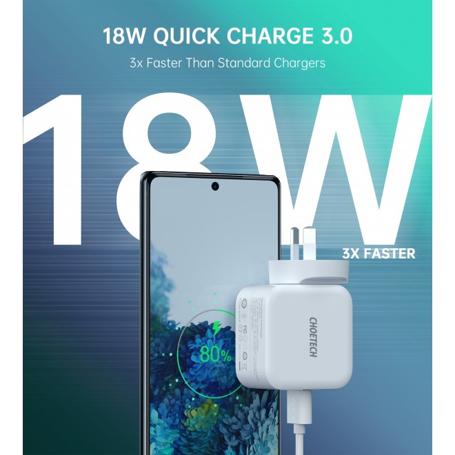 Choetech PD5002 38W Fast Charging Dual Ports AC Adapter - USB QC3.0 18W + PD 20W White