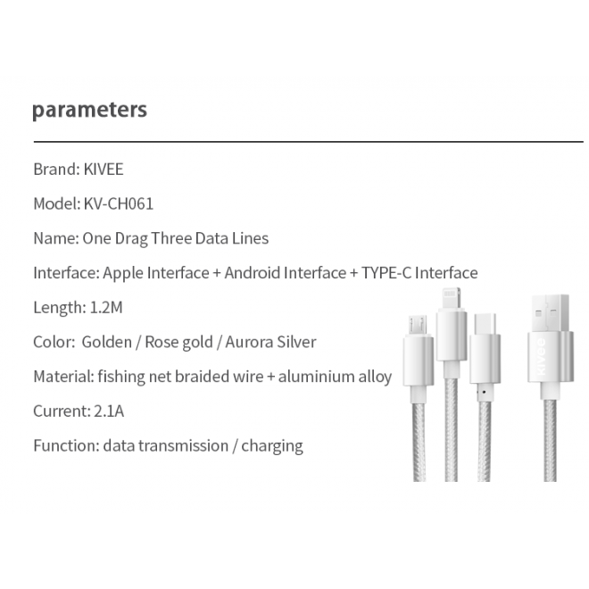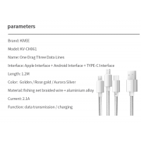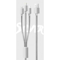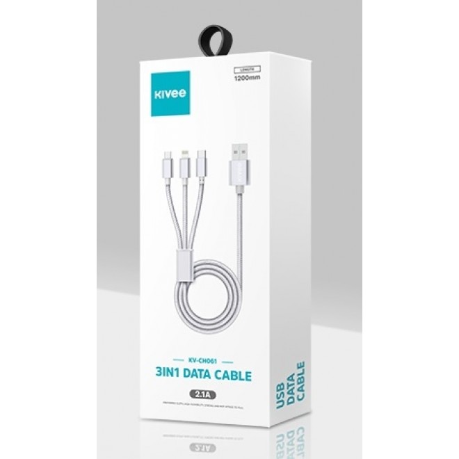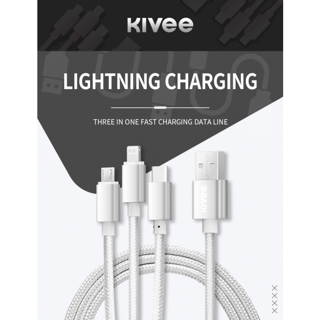 KIVEE CH061 USB-A to Multi Charger Cable 3 in 1 Nylon Braided 1.2M Silver