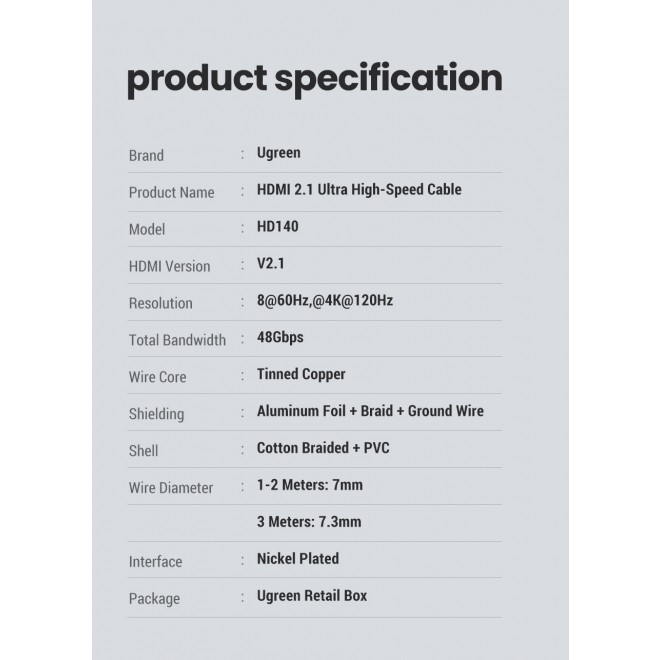 UGREEN 80405 8K Ultra HD HDMI 2.1 Cable 5M