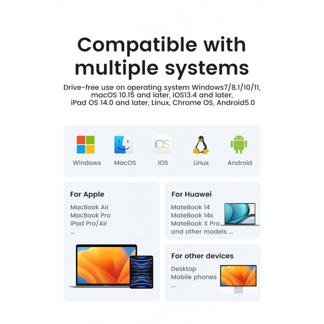 Compatibility Windows 7/ 8.1/ 10/ 11, macOS 10.15 and higher, iOS 13.4 and higher, iPadOS 14.0 and higher, Linux, Chrome OS, Android 5.0