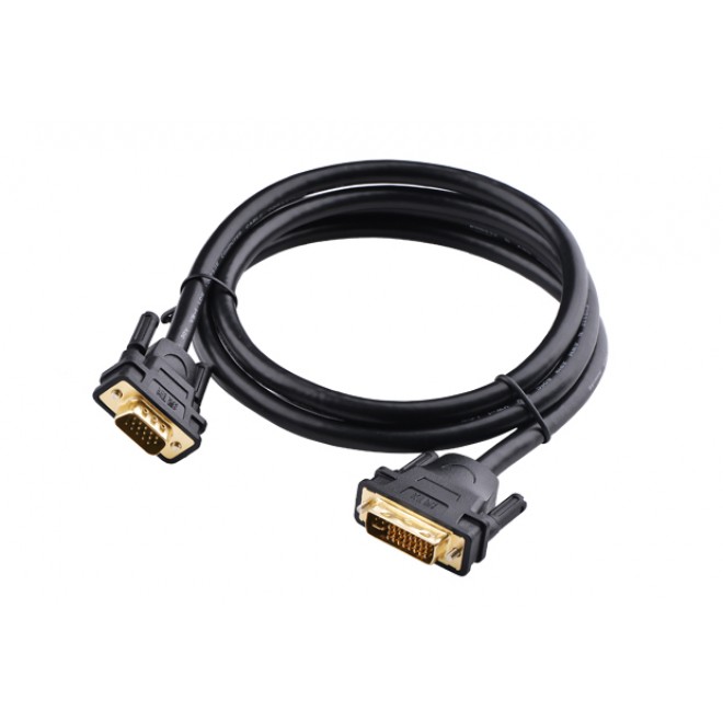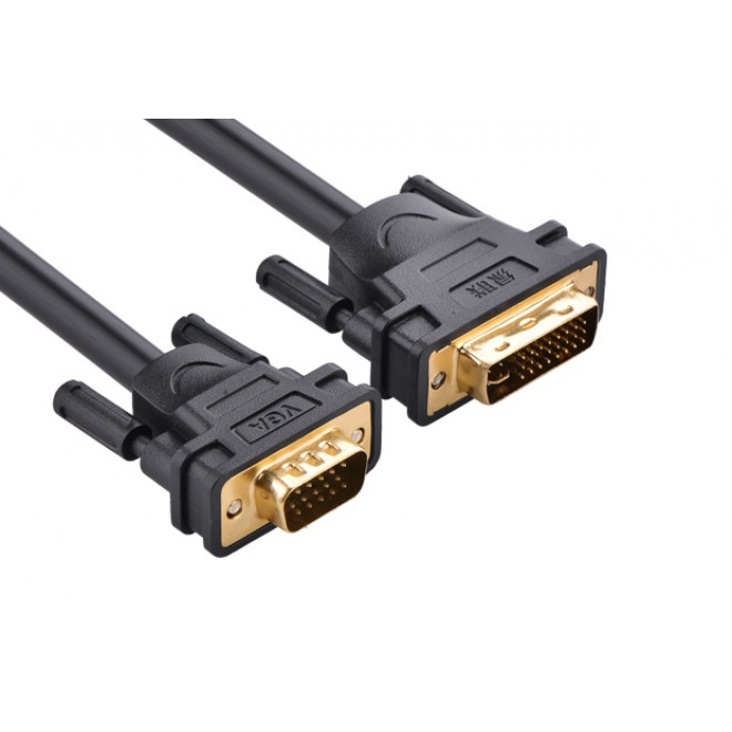 UGREEN DV102 DVI (24+5) Male to VGA male converter cable has a male dual-link DVI 24+5 pin (DVI-I), connector, and a 15-pin VGA male connector. You can easily connect the DVI output from your computer to the VGA input on your monitor with this cable. It's simpler than using an adapter and preserves signal quality.re.