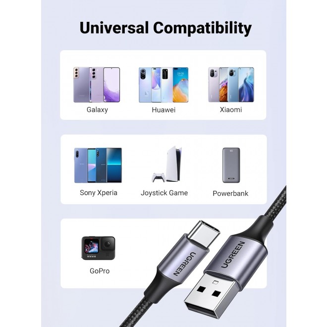 UGREEN 45071 USB A to USB C Cable Nylon Braided 3A Type C Cord Fast Charging cable 1M
